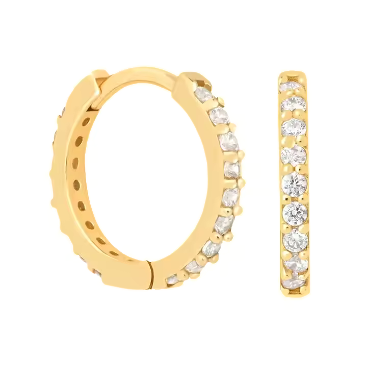 A classic small huggie hoop earring set with sparkling white cubic zirconia stones. LUCY is an ear-stack essential and will add effortless chic to any outfit.